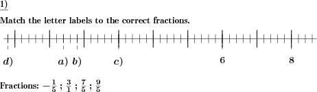 A number line, markers on the line and fractions are given - match markers to fractions.